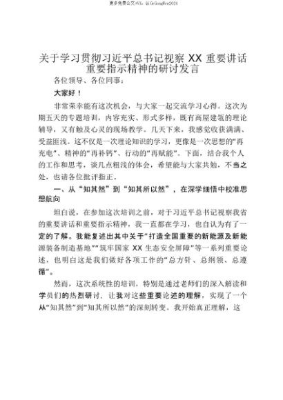 【七哥公文】2025年:【七哥公文】关于学习贯彻习近平总书记视察XX重要讲话重要指示精神的研讨发言_20250815_213024+更多免费公文+VX:QiGeGongWen2024+更多免费公文+VX:QiGeGongWen2024