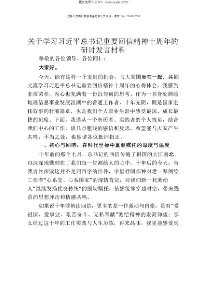 【七哥公文】2025年:【七哥公文】关于学习习近平总书记重要回信精神十周年的研讨发言材料+更多免费公文+VX:QiGeGongWen2024+更多免费公文+VX:QiGeGongWen2024