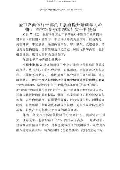 【七哥公文】2025年:【七哥公文】全市农商银行干部员工素质提升培训学习心得:深学细悟强本领笃行实干担使命+更多免费公文+VX:QiGeGongWen2024+更多免费公文+VX:QiGeGongWen2024