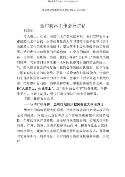 【七哥公文】2025年:【七哥公文】全市防汛工作会议讲话+更多免费公文+VX:QiGeGongWen2024+更多免费公文+VX:QiGeGongWen2024