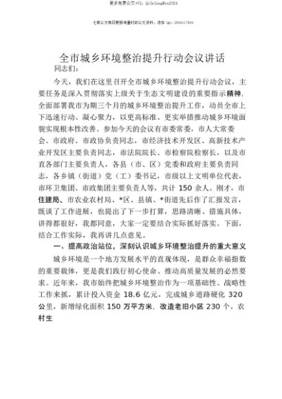 【七哥公文】2025年:【七哥公文】全市城乡环境整治提升行动会议讲话+更多免费公文+VX:QiGeGongWen2024+更多免费公文+VX:QiGeGongWen2024