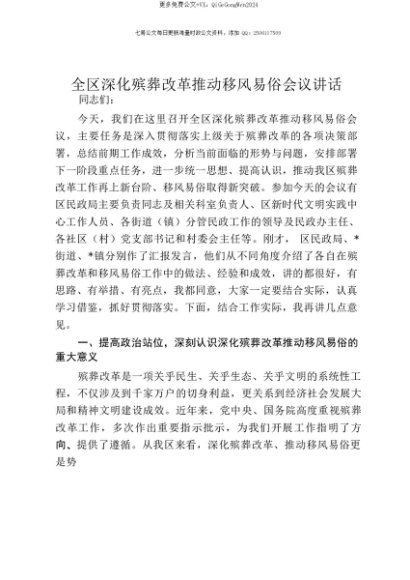 【七哥公文】2025年:【七哥公文】全区深化殡葬改革推动移风易俗会议讲话+更多免费公文+VX:QiGeGongWen2024+更多免费公文+VX:QiGeGongWen2024