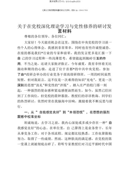 【七哥公文】2025年:【七哥公文】关于在党校深化理论学习与党性修养的研讨发言材料+更多免费公文+VX:QiGeGongWen2024+更多免费公文+VX:QiGeGongWen2024