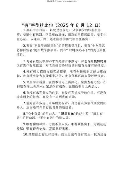 【七哥公文】2025年:【七哥公文】“有”字型排比句(2025年8月11日)_20250815_213024+更多免费公文+VX:QiGeGongWen2024+更多免费公文+VX:QiGeGongWen2024