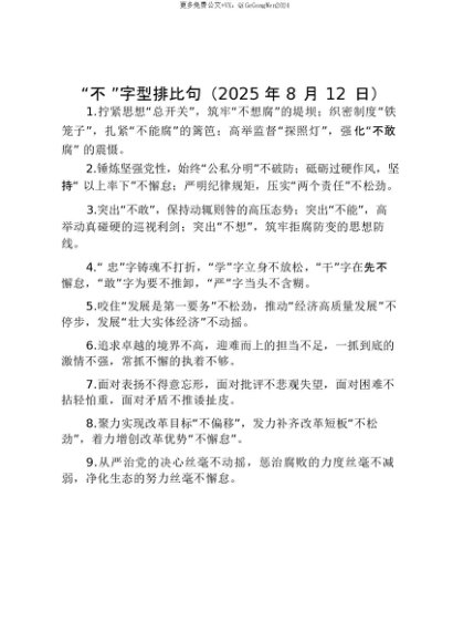 【七哥公文】2025年:【七哥公文】“不”字型排比句(2025年8月12日)_20250815_213024+更多免费公文+VX:QiGeGongWen2024+更多免费公文+VX:QiGeGongWen2024
