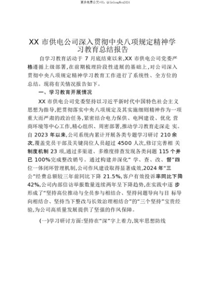 【七哥公文】2025年:【七哥公文】XX市供电公司深入贯彻中央八项规定精神学习教育总结报告_20250815_213024+更多免费公文+VX:QiGeGongWen2024+更多免费公文+VX:QiGeGongWen2024