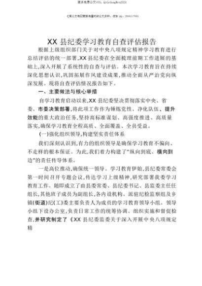 【七哥公文】2025年:【七哥公文】XX县纪委贯彻中央八项规定精神学习教育自查评估报告+更多免费公文+VX:QiGeGongWen2024+更多免费公文+VX:QiGeGongWen2024