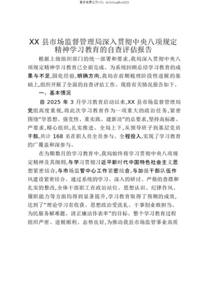 【七哥公文】2025年:【七哥公文】XX县市场监督管理局深入贯彻中央八项规定精神学习教育的自查评估报告_20250815_213024+更多免费公文+VX:QiGeGongWen2024+更多免费公文+VX:QiGeGongWen2024