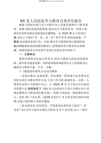 【七哥公文】2025年:【七哥公文】XX县人民医院贯彻中央八项规定精神学习教育自查评估报告_20250815_213023+更多免费公文+VX:QiGeGongWen2024+更多免费公文+VX:QiGeGongWen2024