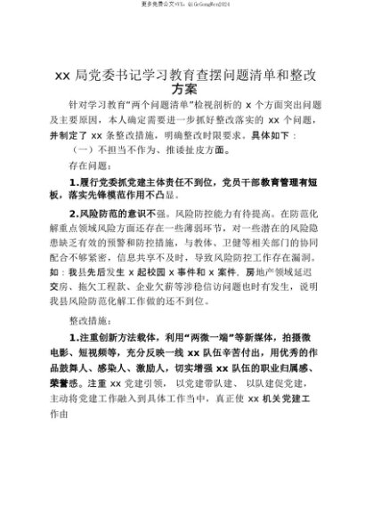 【七哥公文】2025年:【七哥公文】xx局党委书记贯彻中央八项规定精神学习教育查摆问题清单和整改方案_20250815_213024+更多免费公文+VX:QiGeGongWen2024+更多免费公文+VX:QiGeGongWen2024