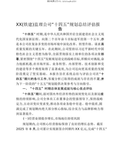 【七哥公文】2025年:【七哥公文】XX(铁建)监理公司“十四五”规划总结评估报告_20250815_213023+更多免费公文+VX:QiGeGongWen2024+更多免费公文+VX:QiGeGongWen2024