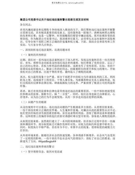 【七哥公文】2025年:【七哥公文】集团公司X委书记关于违纪违法案例警示思想交流发言材料+更多免费公文+VX:QiGeGongWen2024+更多免费公文+VX:QiGeGongWen2024