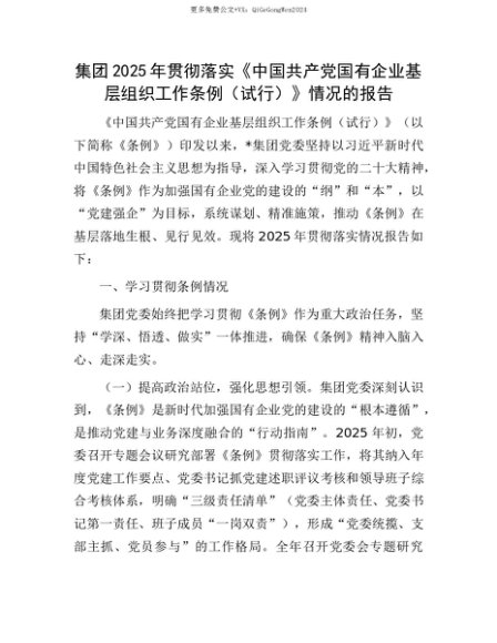 【七哥公文】2025年:【七哥公文】集团2025年贯彻落实《中国共产X国有企业基层组织工作条例(试行)》情况的报告+更多免费公文+VX:QiGeGongWen2024+更多免费公文+VX:QiGeGongWen2024