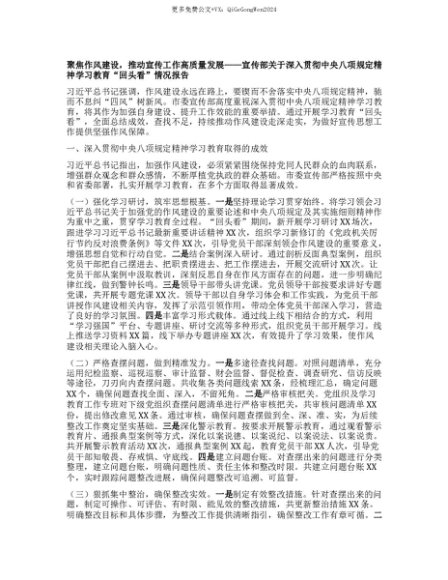 【七哥公文】2025年:【七哥公文】聚焦作风建设,推动宣传工作高质量发展——宣传部关于深入贯彻中央BXGD精神学习教育“回头看”情况报告+更多免费公文+VX:QiGeGongWen2024+更多免费公文+VX:QiGeGongWen2024
