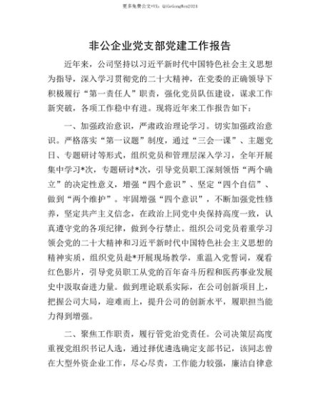 【七哥公文】2025年:【七哥公文】非公企业X支部X建工作报告+更多免费公文+VX:QiGeGongWen2024+更多免费公文+VX:QiGeGongWen2024