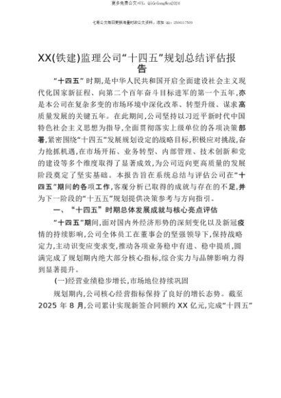 【七哥公文】2025年:【七哥公文】XX(铁建)监理公司“十四五”规划总结评估报告+更多免费公文+VX:QiGeGongWen2024+更多免费公文+VX:QiGeGongWen2024