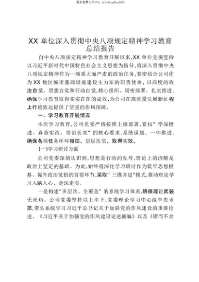【七哥公文】2025年:【七哥公文】XX单位深入贯彻中央八项规定精神学习教育总结报告_20250815_213023+更多免费公文+VX:QiGeGongWen2024+更多免费公文+VX:QiGeGongWen2024