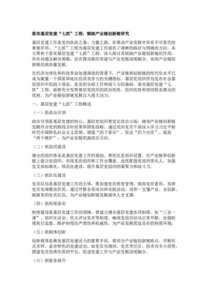 【七哥公文】2025年:【七哥公文】落实基层X建“七抓”工程,赋能产业链创新链研究+更多免费公文+VX:QiGeGongWen2024+更多免费公文+VX:QiGeGongWen2024