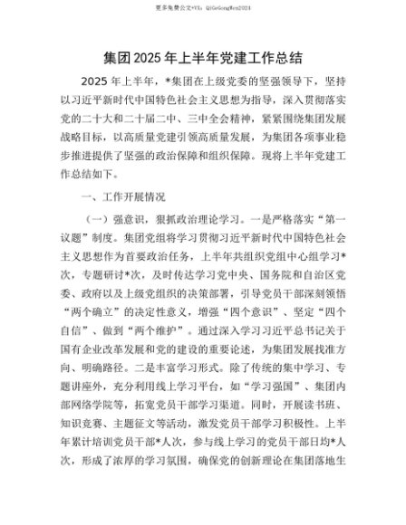 【七哥公文】2025年:【七哥公文】集团2025年上半年X建工作总结+更多免费公文+VX:QiGeGongWen2024+更多免费公文+VX:QiGeGongWen2024