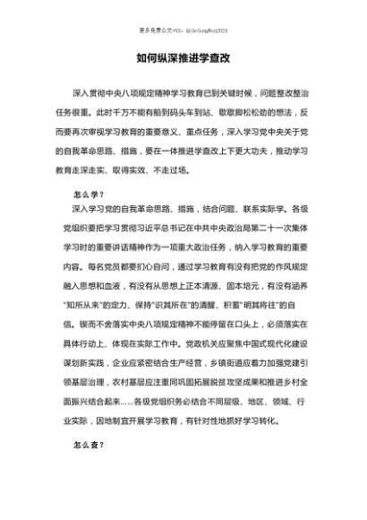 【七哥公文】2025年:【七哥公文】红色精美如何纵深推进学查改PPT2025主题教育党课(讲稿)+更多免费公文+VX:QiGeGongWen2024+更多免费公文+VX:QiGeGongWen2024