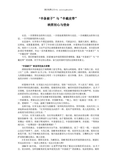 【七哥公文】2025年:【七哥公文】简洁大气半条被子与半截皮带 映照初心与使命PPT长征红色故事课件(讲稿)+更多免费公文+VX:QiGeGongWen2024+更多免费公文+VX:QiGeGongWen2024