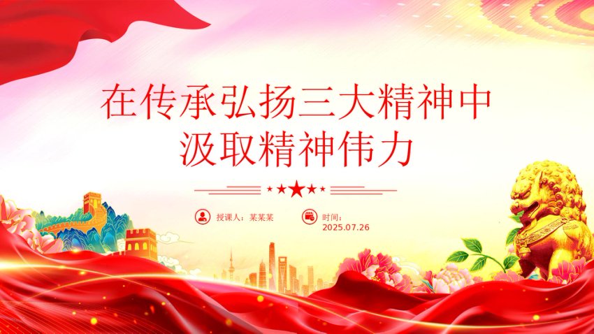 【七哥公文】2025年:【七哥公文】精美大气在传承弘扬三大精神中汲取精神伟力PPT党课下载+更多免费公文+VX:QiGeGongWen2024+更多免费公文+VX:QiGeGongWen2024