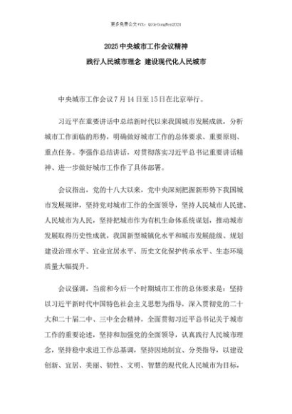 【七哥公文】2025年:【七哥公文】简洁大气中央城市工作会议PPT践行人民城市理念建设现代化人民城市课件(讲稿)+更多免费公文+VX:QiGeGongWen2024+更多免费公文+VX:QiGeGongWen2024