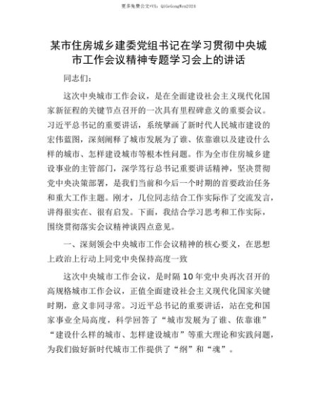 【七哥公文】2025年:【七哥公文】某市住房城乡建委X组书记在学习贯彻中央城市工作会议精神专题学习会上的讲话+更多免费公文+VX:QiGeGongWen2024+更多免费公文+VX:QiGeGongWen2024