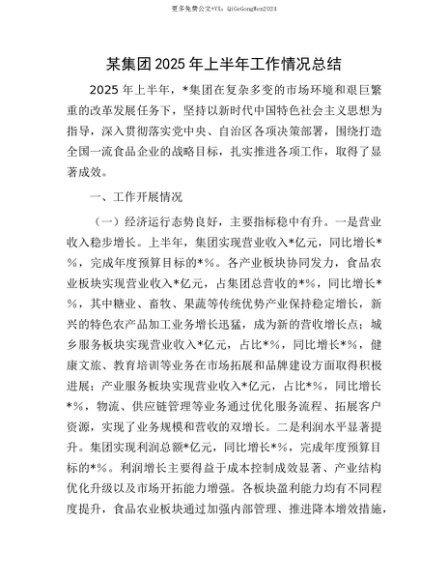 【七哥公文】2025年:【七哥公文】某集团2025年上半年工作情况总结+更多免费公文+VX:QiGeGongWen2024+更多免费公文+VX:QiGeGongWen2024