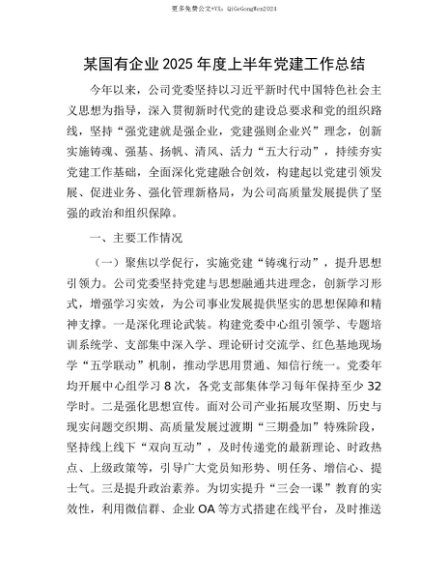 【七哥公文】2025年:【七哥公文】某国有企业2025年度上半年X建工作总结+更多免费公文+VX:QiGeGongWen2024+更多免费公文+VX:QiGeGongWen2024