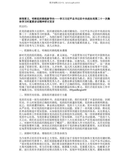 【七哥公文】2025年:【七哥公文】深悟要义,明晰组织路线新导向——学习习近平总书记在中央ZZ局第二十一次集体学习时重要讲话精神研讨发言+更多免费公文+VX:QiGeGongWen2024+更多免费公文+VX:QiGeGongWen2024