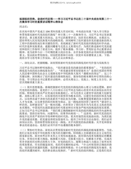 【七哥公文】2025年:【七哥公文】砥砺组织优势,奋进时代征程——学习习近平总书记在二十届中央ZZ局第二十一次集体学习时的重要讲话精神心得体会+更多免费公文+VX:QiGeGongWen2024+更多免费公文+VX:QiGeGongWen2024