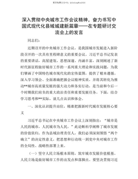 【七哥公文】2025年:【七哥公文】深入贯彻中央城市工作会议精神,奋力书写中国式现代化县域城建新篇章——在专题研讨交流会上的发言+更多免费公文+VX:QiGeGongWen2024+更多免费公文+VX:QiGeGongWen2024