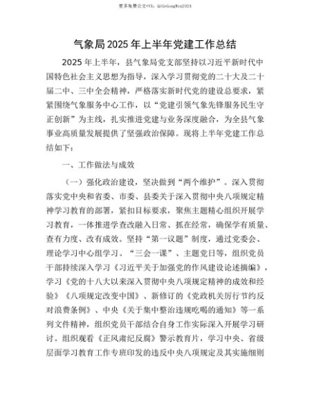 【七哥公文】2025年:【七哥公文】气象局2025年上半年X建工作总结+更多免费公文+VX:QiGeGongWen2024+更多免费公文+VX:QiGeGongWen2024