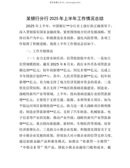 【七哥公文】2025年:【七哥公文】某银行分行2025年上半年工作情况总结+更多免费公文+VX:QiGeGongWen2024+更多免费公文+VX:QiGeGongWen2024