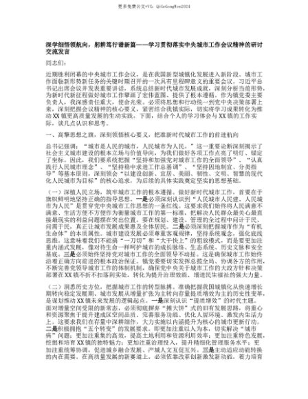 【七哥公文】2025年:【七哥公文】深学细悟领航向,躬耕笃行谱新篇——学习贯彻落实中央城市工作会议精神的研讨交流发言+更多免费公文+VX:QiGeGongWen2024+更多免费公文+VX:QiGeGongWen2024