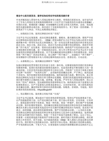 【七哥公文】2025年:【七哥公文】理论中心组交流发言:做学纪知纪明纪守纪的真实践行者+更多免费公文+VX:QiGeGongWen2024+更多免费公文+VX:QiGeGongWen2024