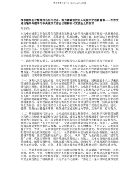 【七哥公文】2025年:【七哥公文】深学细悟会议精神担当先行使命,奋力铸就现代化人民城市交通新篇章——在市交通运输局专题学习中央城市工作会议精神研讨交流会上的发言+更多免费公文+VX:QiGeGongWen2024+更多免费公文+VX:QiGeGongWen2024