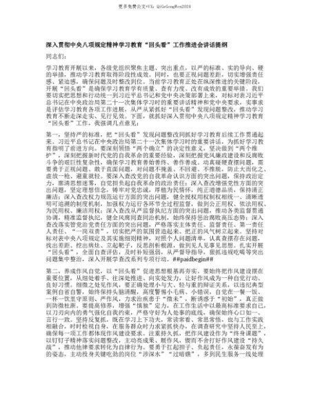 【七哥公文】2025年:【七哥公文】深入贯彻中央BXGD精神学习教育“回头看”工作推进会讲话提纲+更多免费公文+VX:QiGeGongWen2024+更多免费公文+VX:QiGeGongWen2024