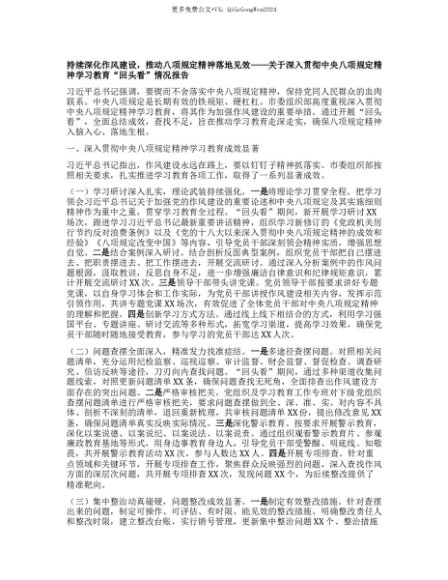 【七哥公文】2025年:【七哥公文】持续深化作风建设,推动BXGD精神落地见效——关于深入贯彻中央BXGD精神学习教育“回头看”情况报告+更多免费公文+VX:QiGeGongWen2024+更多免费公文+VX:QiGeGongWen2024