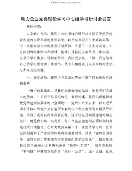 【七哥公文】2025年:【七哥公文】电力企业X委理论学习中心组学习研讨会发言+更多免费公文+VX:QiGeGongWen2024+更多免费公文+VX:QiGeGongWen2024