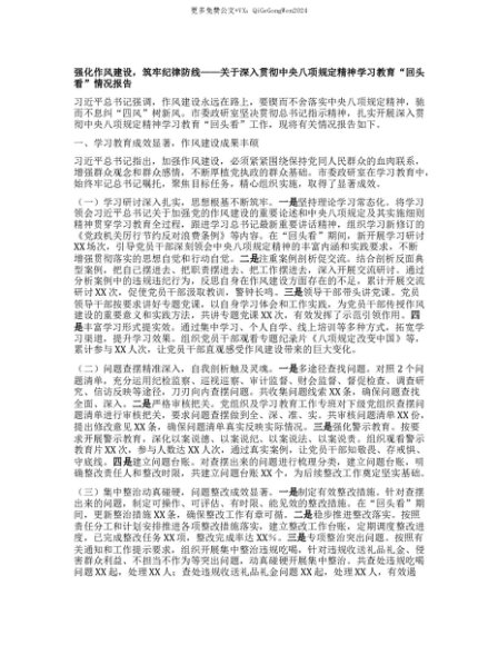 【七哥公文】2025年:【七哥公文】强化作风建设,筑牢纪律防线——关于深入贯彻中央BXGD精神学习教育“回头看”情况报告+更多免费公文+VX:QiGeGongWen2024+更多免费公文+VX:QiGeGongWen2024