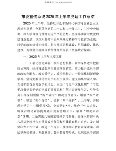 【七哥公文】2025年:【七哥公文】市委宣传系统2025年上半年X建工作总结+更多免费公文+VX:QiGeGongWen2024+更多免费公文+VX:QiGeGongWen2024