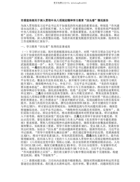 【七哥公文】2025年:【七哥公文】市委宣传部关于深入贯彻中央BXGD精神学习教育“回头看”情况报告+更多免费公文+VX:QiGeGongWen2024+更多免费公文+VX:QiGeGongWen2024