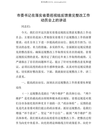 【七哥公文】2025年:【七哥公文】市委书记在落实省委巡视组反馈意见整改工作动员会上的讲话+更多免费公文+VX:QiGeGongWen2024+更多免费公文+VX:QiGeGongWen2024