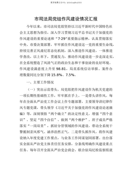 【七哥公文】2025年:【七哥公文】市司法局X组作风建设情况汇报+更多免费公文+VX:QiGeGongWen2024+更多免费公文+VX:QiGeGongWen2024
