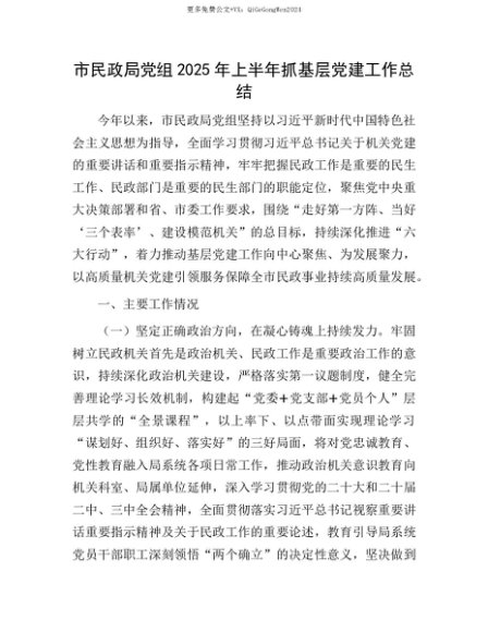 【七哥公文】2025年:【七哥公文】市民政局X组2025年上半年抓基层X建工作总结+更多免费公文+VX:QiGeGongWen2024+更多免费公文+VX:QiGeGongWen2024