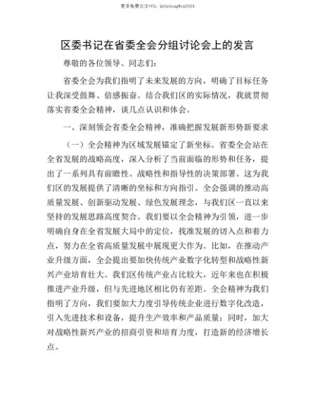 【七哥公文】2025年:【七哥公文】区委书记在省委全会分组讨论会上的发言+更多免费公文+VX:QiGeGongWen2024+更多免费公文+VX:QiGeGongWen2024