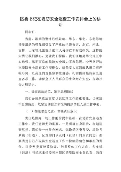 【七哥公文】2025年:【七哥公文】区委书记在堤防安全巡查工作安排会上的讲话+更多免费公文+VX:QiGeGongWen2024+更多免费公文+VX:QiGeGongWen2024