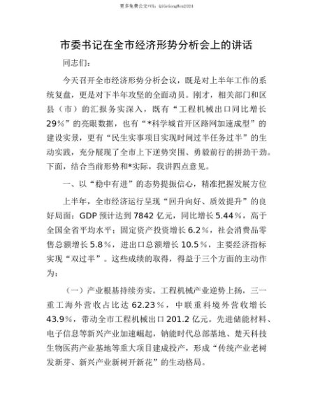 【七哥公文】2025年:【七哥公文】市委书记在全市经济形势分析会上的讲话+更多免费公文+VX:QiGeGongWen2024+更多免费公文+VX:QiGeGongWen2024
